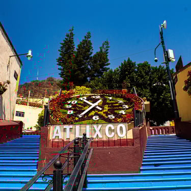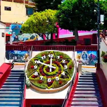 El Reloj Floral es uno de los atractivos más representativos de Atlixco. Su diseño monumental y lleno de color lo ha convertido en un ícono de la ciudad, un lugar perfecto para recorrer y admirar cada detalle.